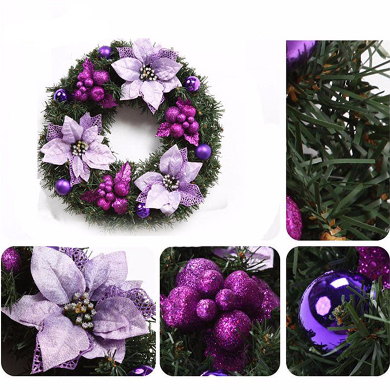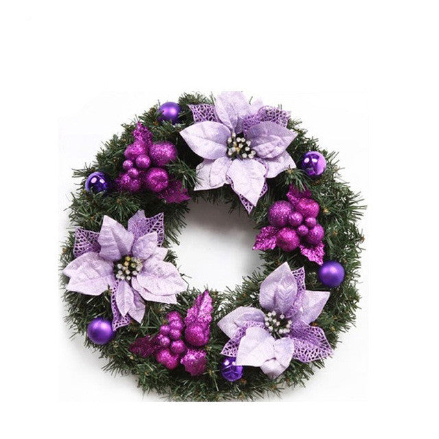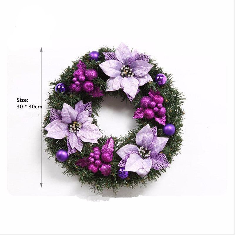 Let the feeling of Christmas start right at your doorstep. This wreath has a diameter of 30cm x 30cm. It's fully decorated with various flowers and other Christmas decorations.